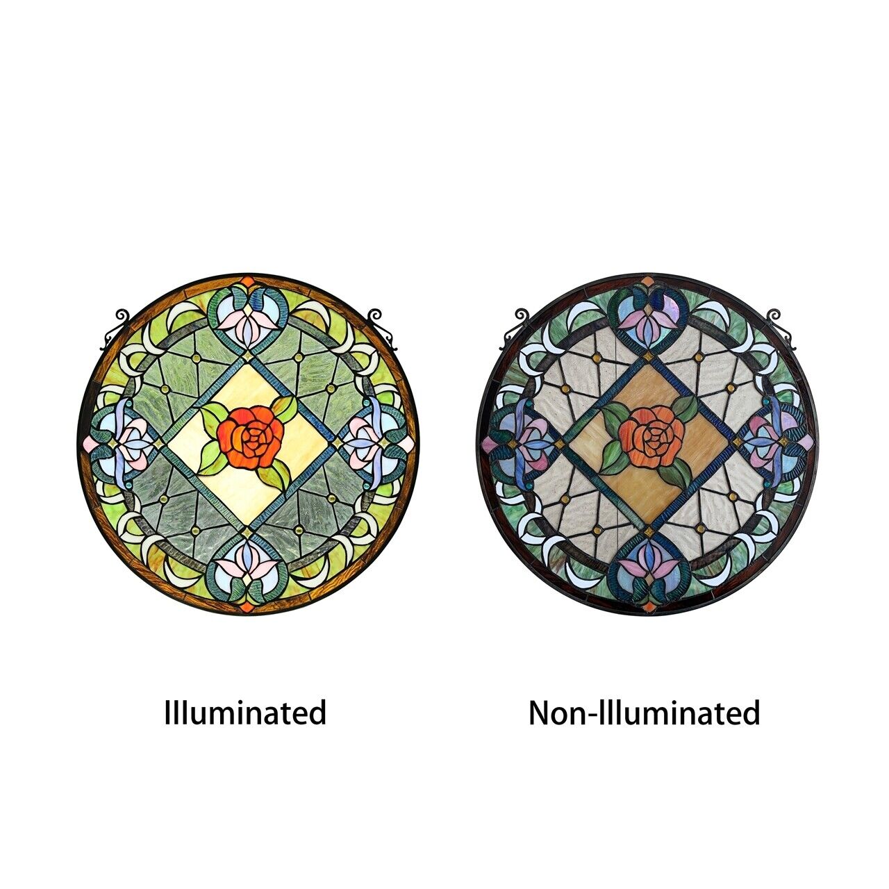 Antique Vintage Style 23" Round Stained Glass Window Hanging Panel Suncatcher