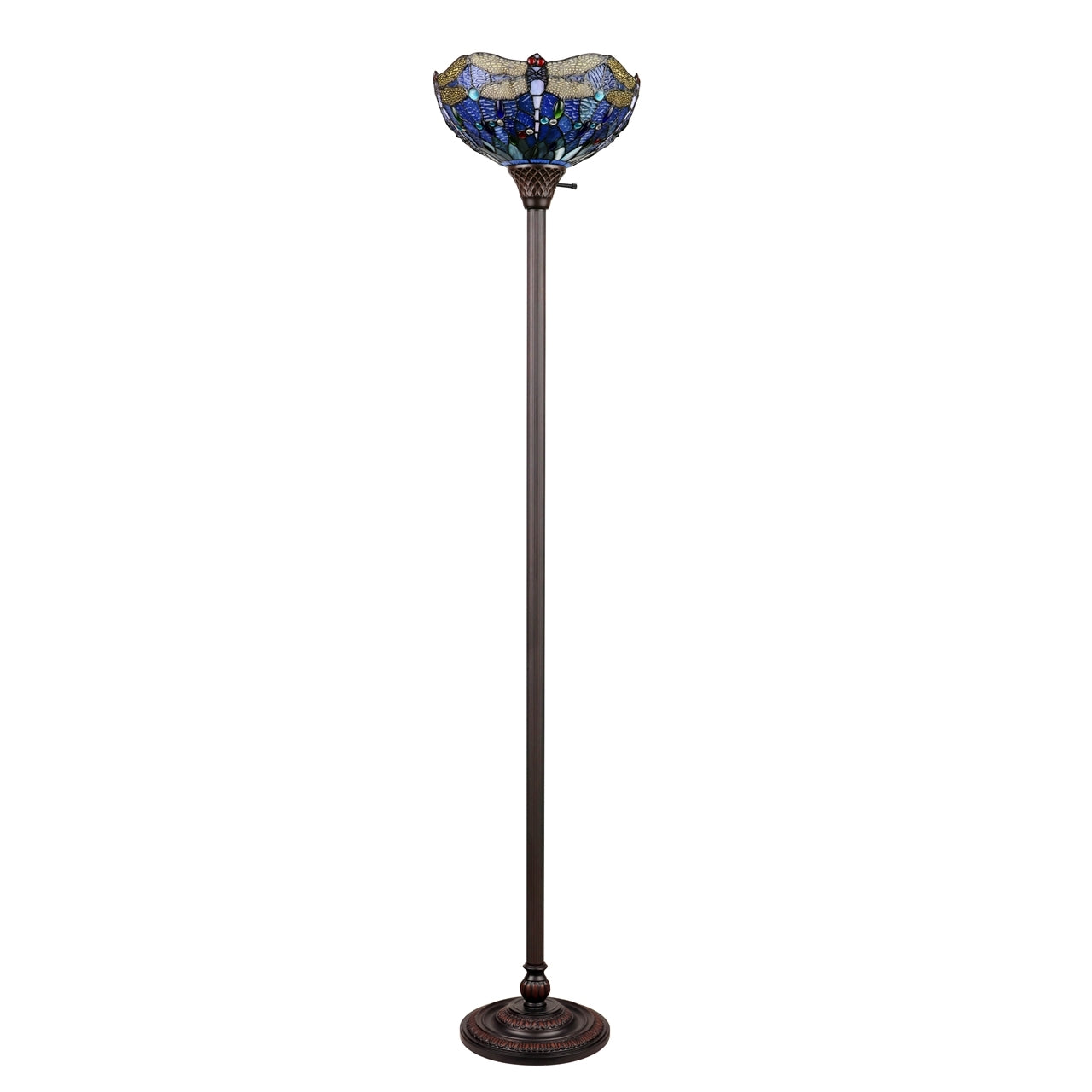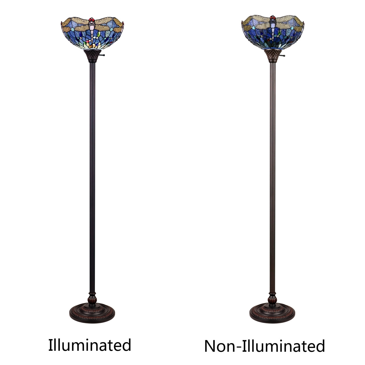 68.98" Antique Vintage Style Stained Glass Dragonfly Torchiere Floor Lamp